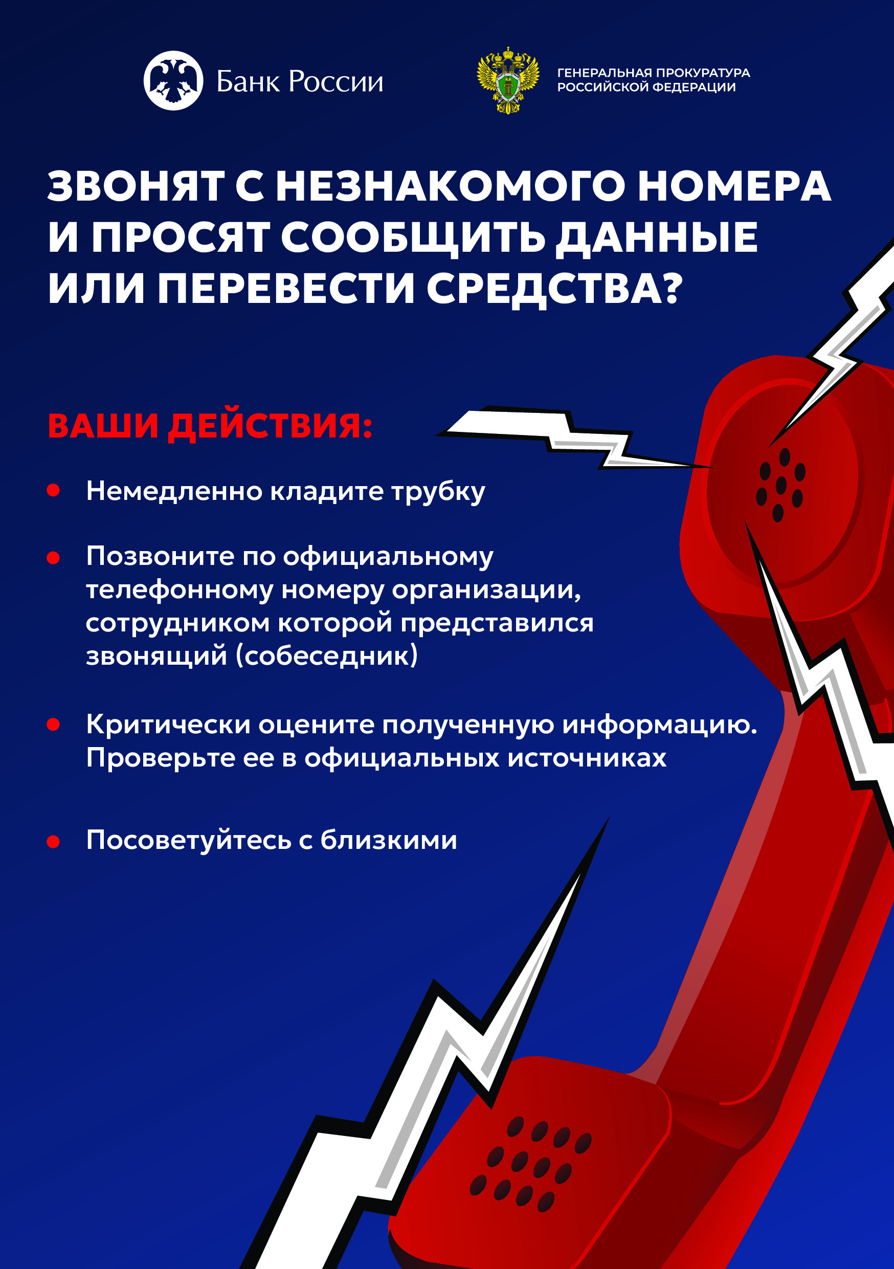 Друзья! В наш век развитых информационных технологий участились случаи мошенничества по телефону. Напоминаем о том, как обезопасить себя и не стать жертвами мошеннических схем. Кладите трубку!